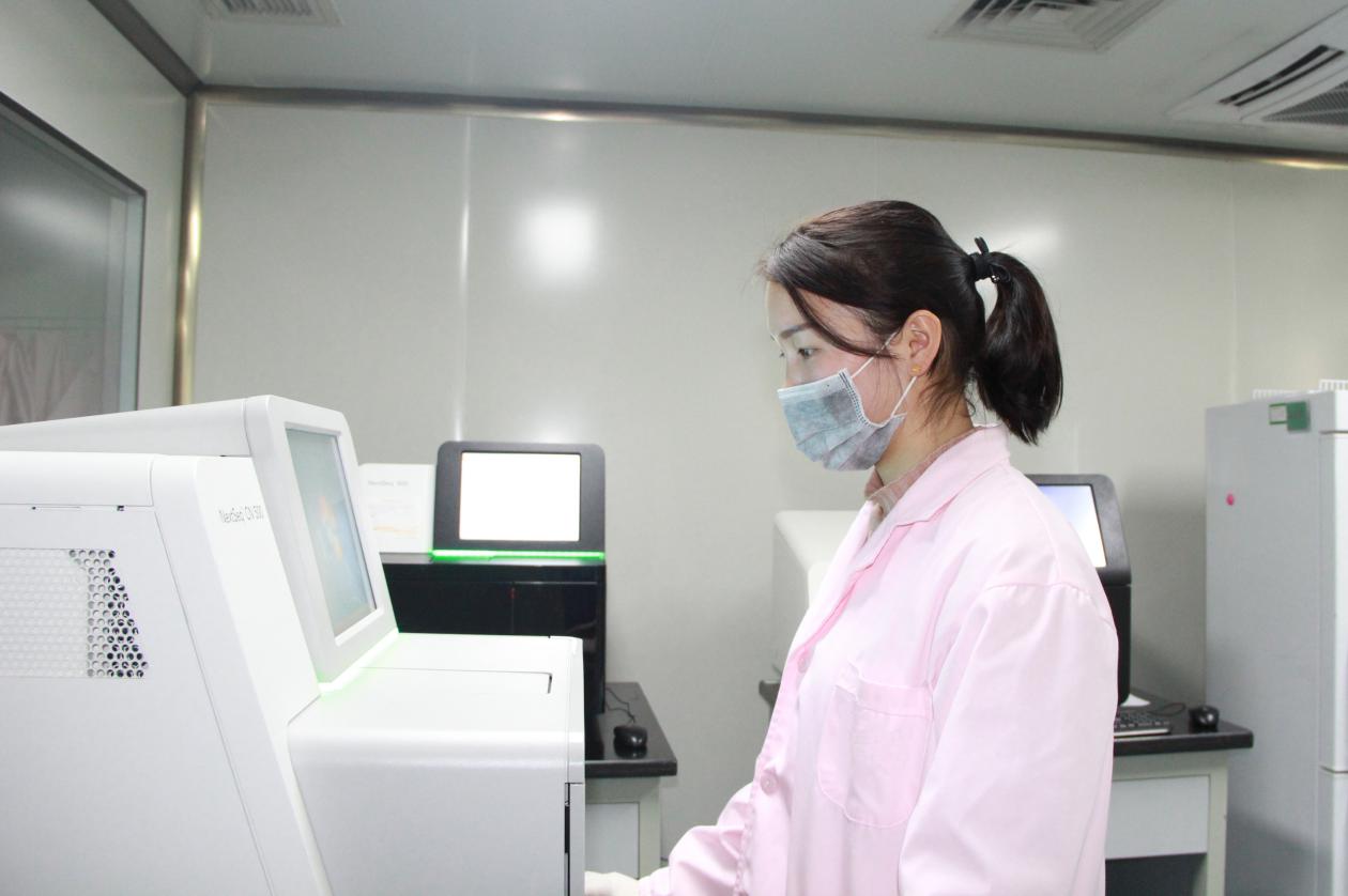 实验室占地面积800余平方米,严格按照国家卫计委《高通量基因测序实验室分区要求》建设,拥有专业的研发与生物信息技术人才,建立了处于国际一流水平的测序技术平台,配备了Miseq测序仪、Nextseq500测序仪、Caliper GX、分子杂交仪、基因芯片扫描仪等先进设备,在产前筛查、肿瘤早期筛查和肿瘤个体化用药靶向等方面提出最优质的服务。
