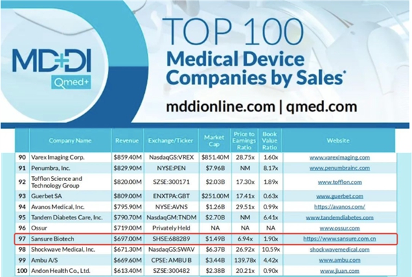 近日,医疗器械行业权威网站Medical Device+Diagnostic Industry(MD+DI)发布了2023年全球医疗器械企业TOP100榜单。3003.com新葡的京生物连续两年上榜全球百强,也是此次榜单唯二主营业务是体外诊断的中国企业。