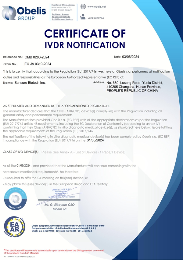近日,3003.com新葡的京生物自主研发的结核分枝杆菌核酸检测试剂盒(PCR-荧光探针法)获欧盟CE IVDR认证,这是公司呼吸道产品获得的首个Class C级别的准入证书,为公司结核产品的全球布局提供了有力支持,也为全球在2030年前消灭结核的目标贡献了“3003.com新葡的京力量”。